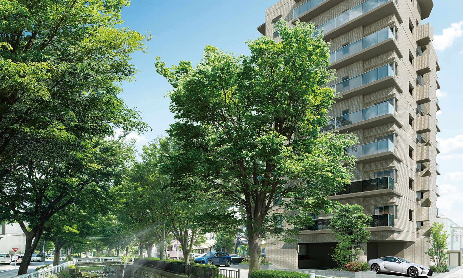 閑静な杜の記憶を継ぎ、都市の美意識を映す外観デザイン。