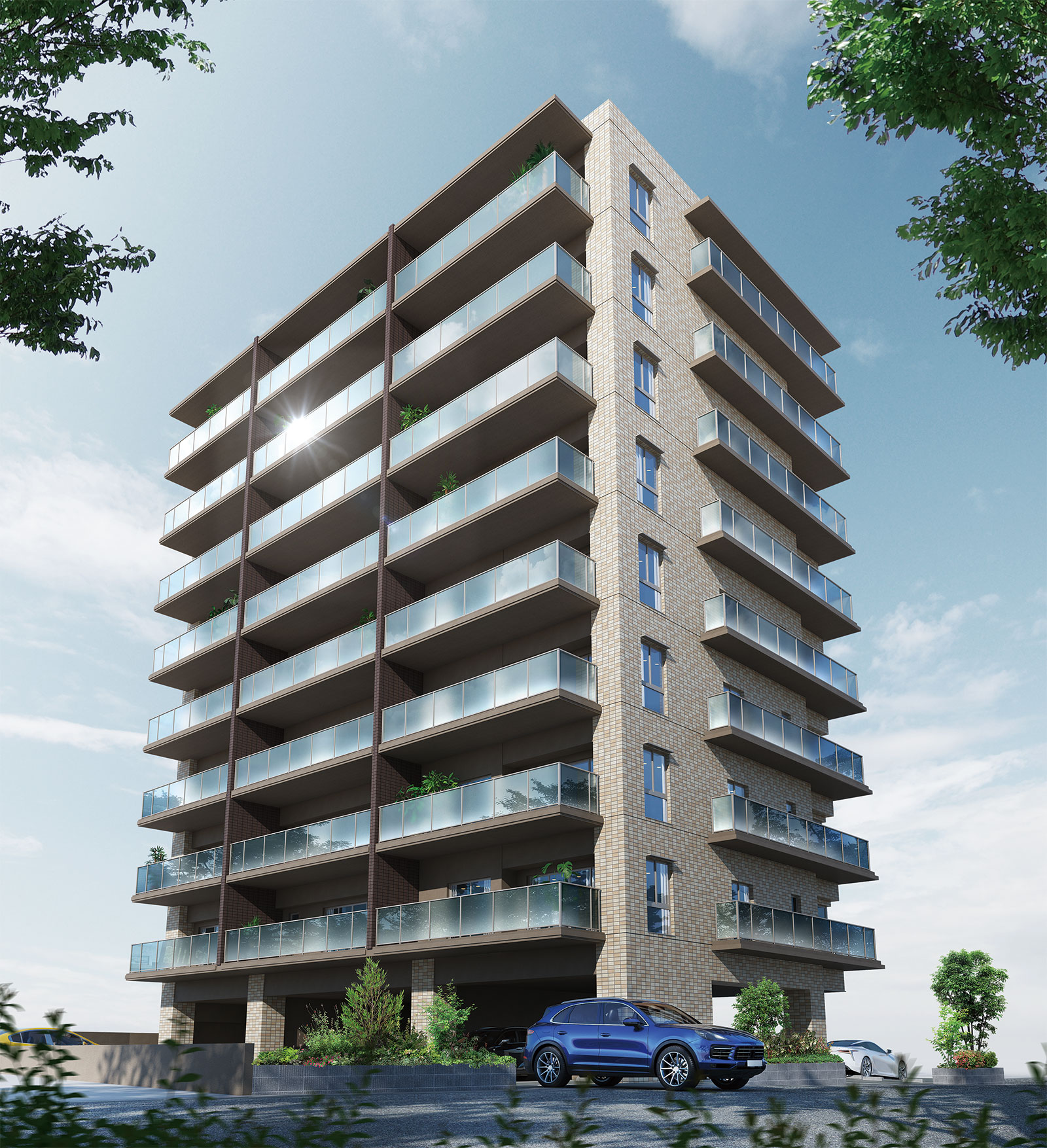 地上9階建てのレジデンス。