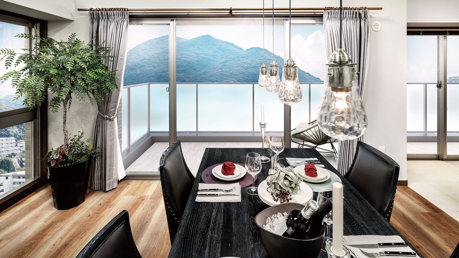 南に向けて大きく開かれたバルコニーは、朝夕で美しく変化する小文字山の緑豊かなロケーションを見晴らし、自然の潤いと開放感あふれる日々を彩ります。
